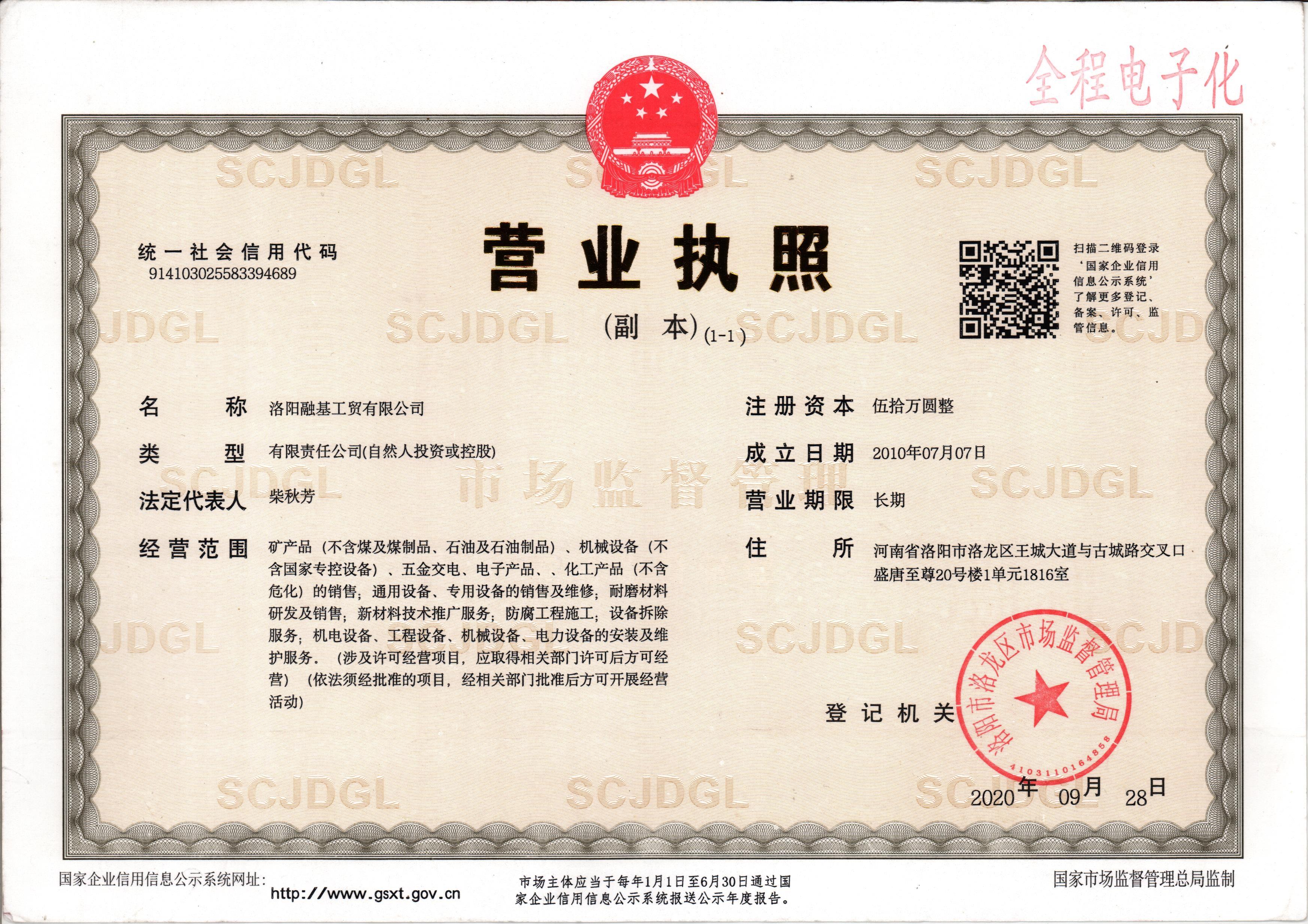 融基營業執照